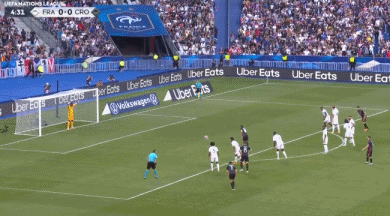 第72分鐘,布萊卡洛橫傳分球,馬耶爾抽射攻門被邁尼昂撲出。第75分鐘,科曼角球傳中,瓊阿梅尼頭球攻門,皮球打在防守球員身上后被門將沒(méi)收。第78分鐘,姆巴佩前場(chǎng)中路任意球直接攻門高出橫梁。第86分鐘,迪涅挑傳禁區(qū),拉比奧特停球后小角度抽射攻門打高。傷停補(bǔ)時(shí)第5分鐘,科曼斜傳禁區(qū),科納特頭球攻門頂偏。最終法國(guó)0-1不敵克羅地亞。