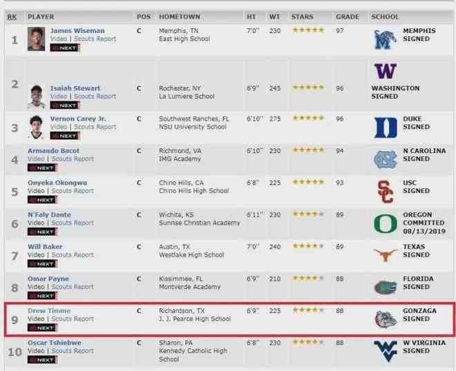 2019年德魯高中畢業,ESPN綜合評分88分四星高中生,在全美同位置中鋒中排名第9,而當屆排名第1的潛力中鋒是大聰明懷斯曼,第2是莽牛斯圖爾特,德魯收到全美多所D1級大學招募,最終選擇加盟岡薩加大學。