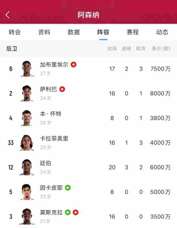 墻裂了??阿森納后防八大金剛總身價4.23億歐,3傷員身價1.9億歐
