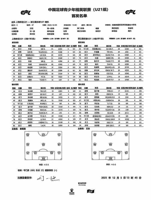 12月5日15:00 ,2025中國足球青少年精英聯(lián)賽(U21組)決賽階段第6輪上海申花對(duì)陣浙江俱樂部的比賽在海口觀瀾湖國際足球訓(xùn)練基地進(jìn)行。比賽第34分鐘,浙江隊(duì)率先破門。第 61分鐘,對(duì)手?jǐn)U大領(lǐng)先優(yōu)勢。最終上海申花0-2告負(fù)。
