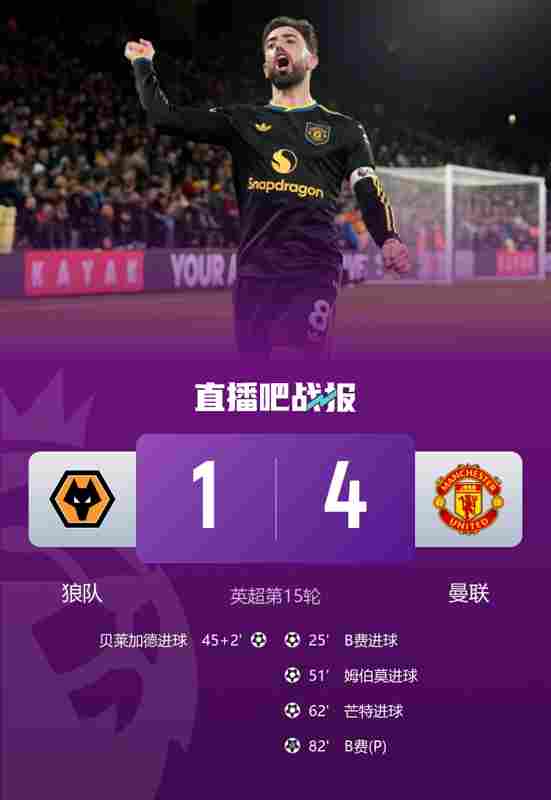 12月9日訊 英超第15輪比賽,狼隊主場1-4不敵曼聯。